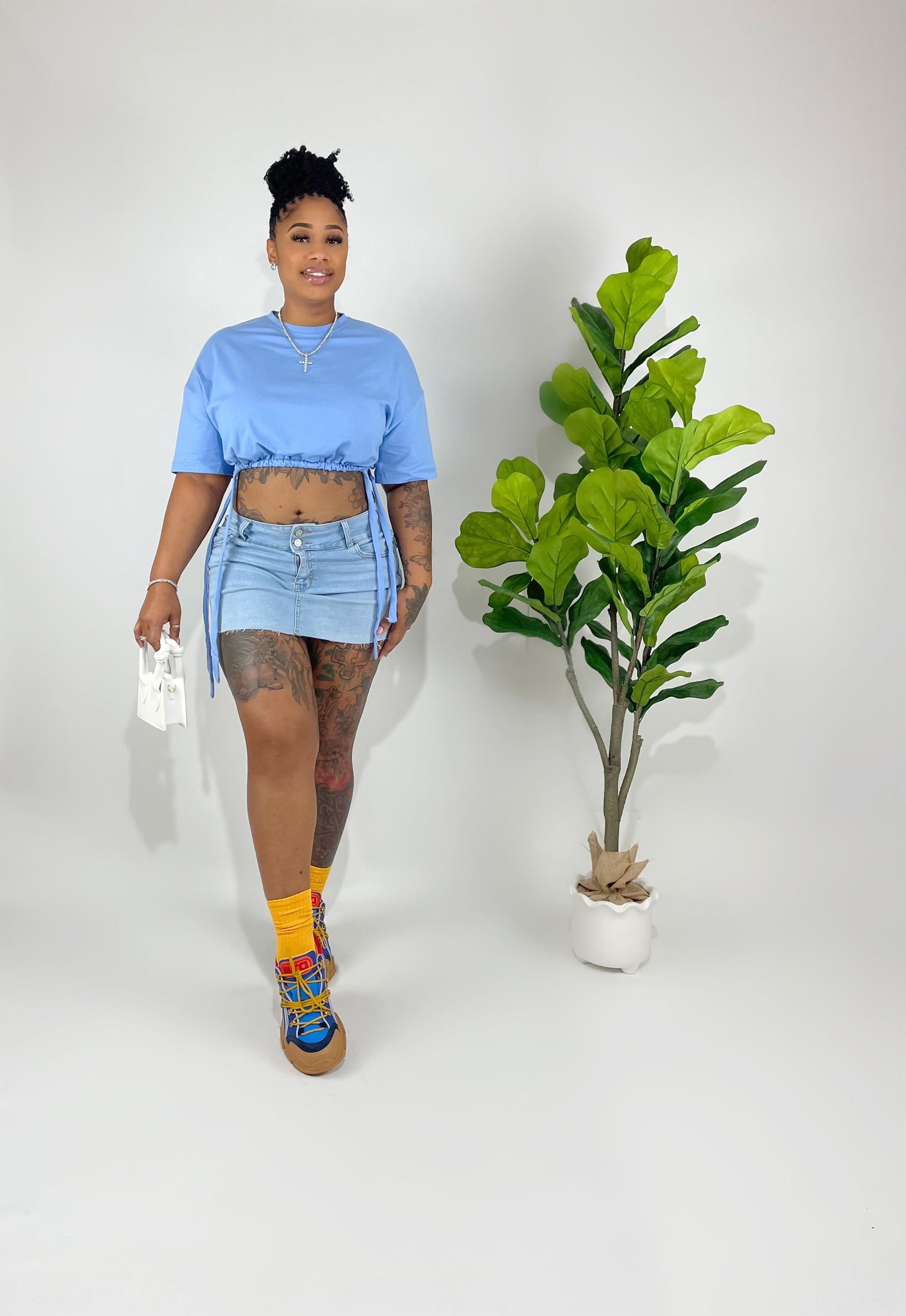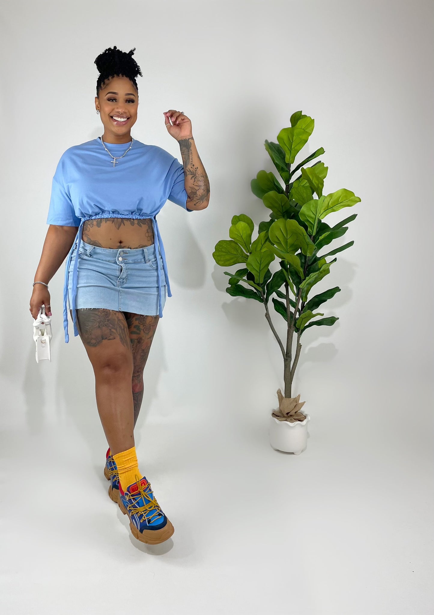 Transform your look with our Pull Yourself Together Top! Oversized for comfort, it features a stylish knot side and a drawstring hem for a customizable fit. With a touch of stretch and a classic round neck, this top will keep you looking and feeling put together.