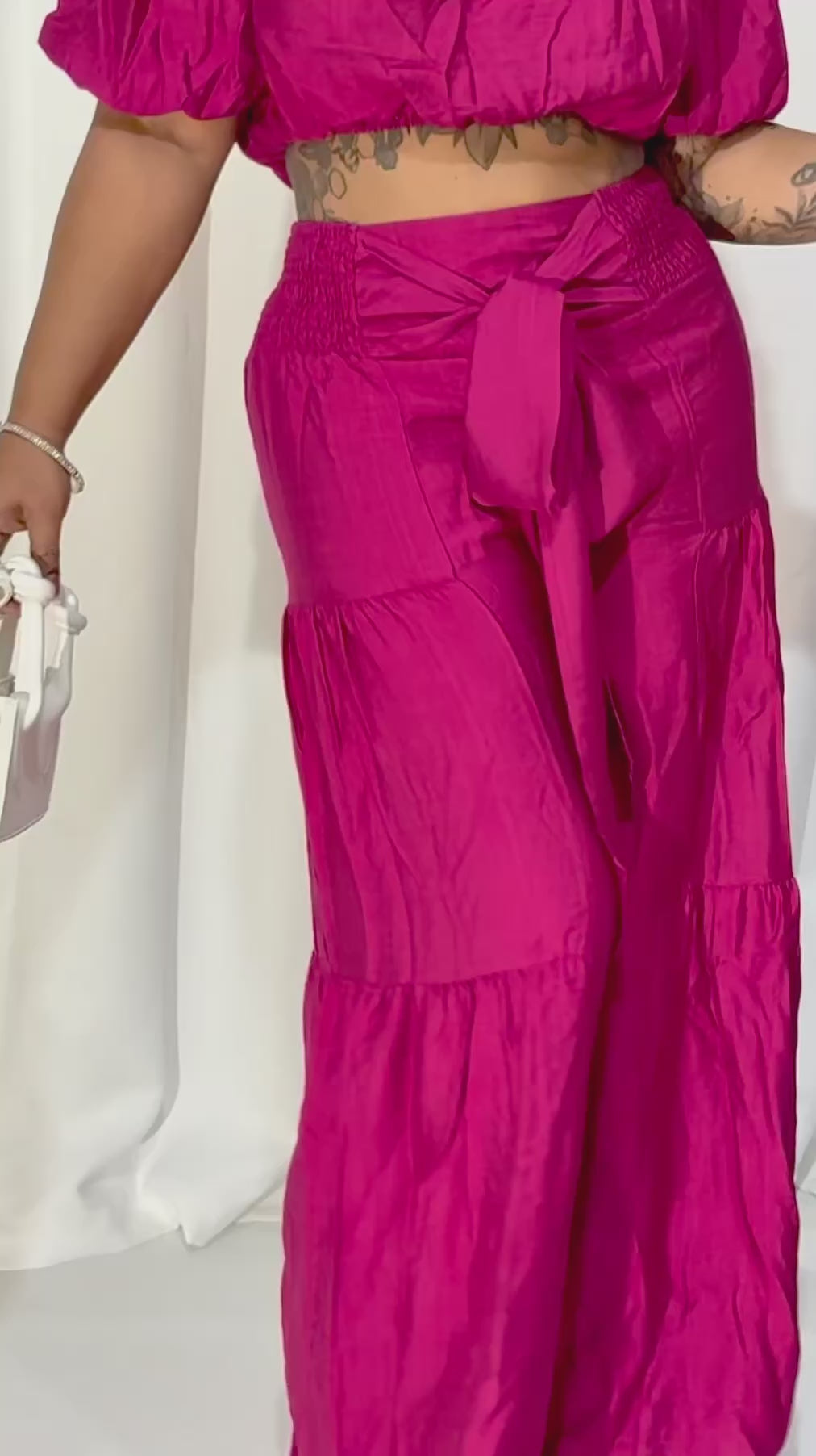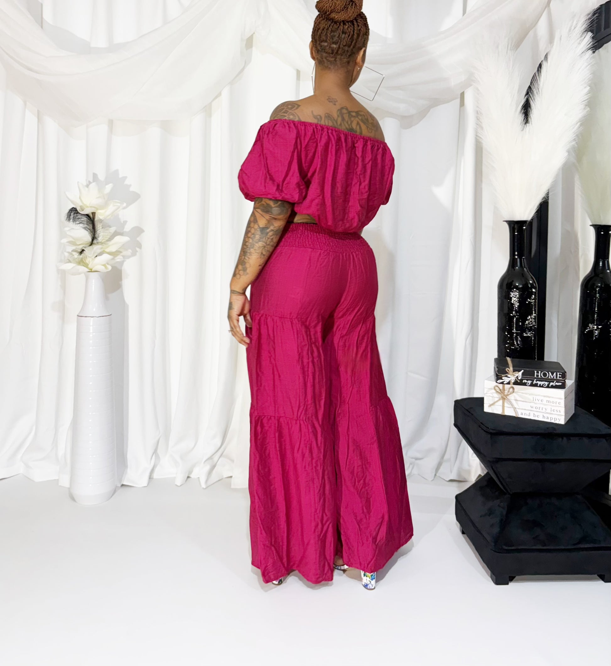 Heading out for dinner? This set is the perfect mix of flirty and classy. The off-shoulder top highlights your neckline while the flowy pants bring effortless glam.