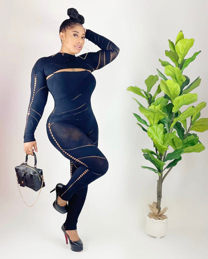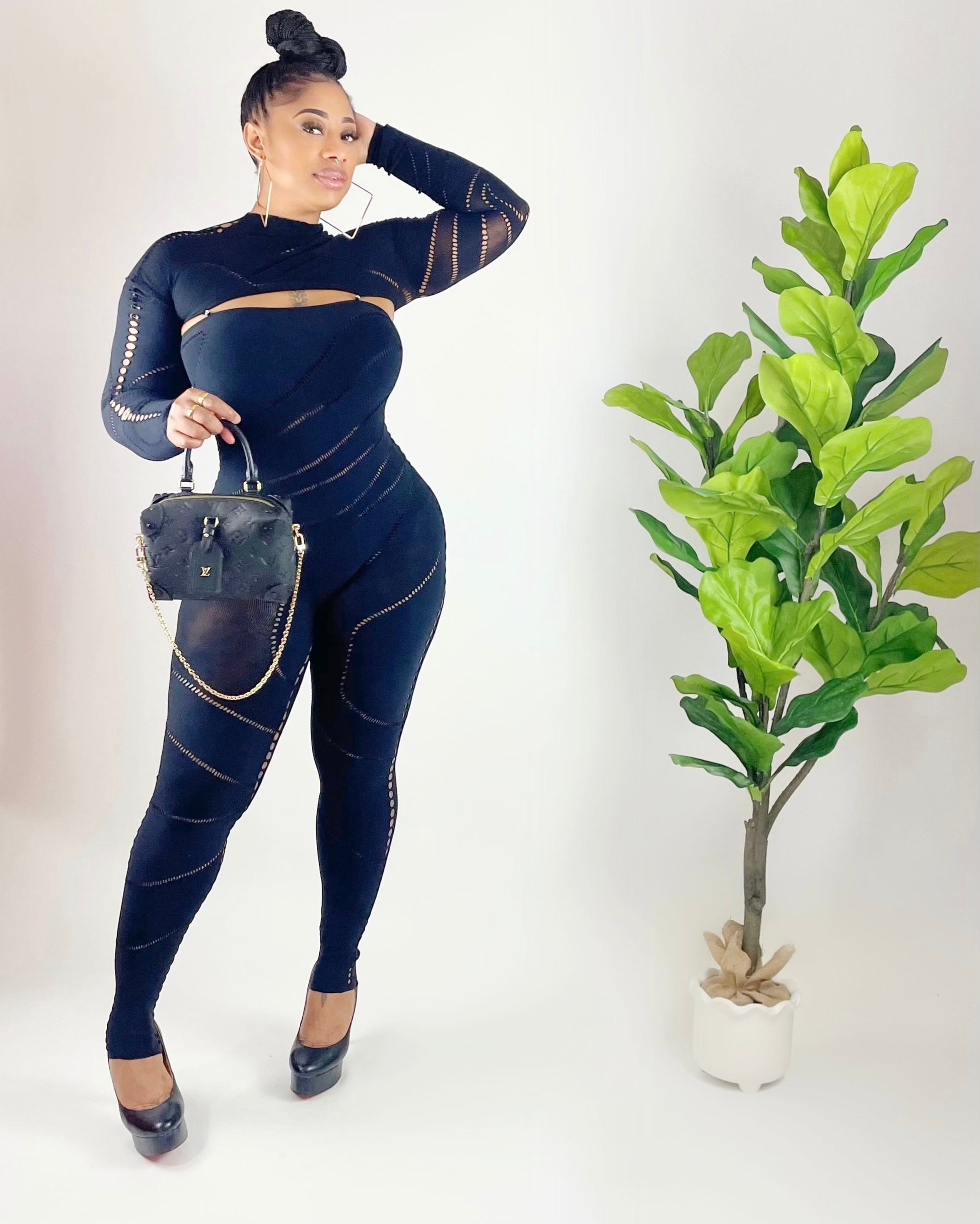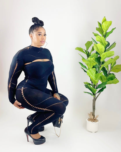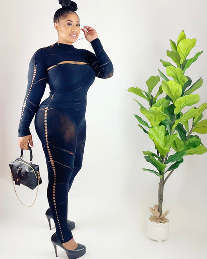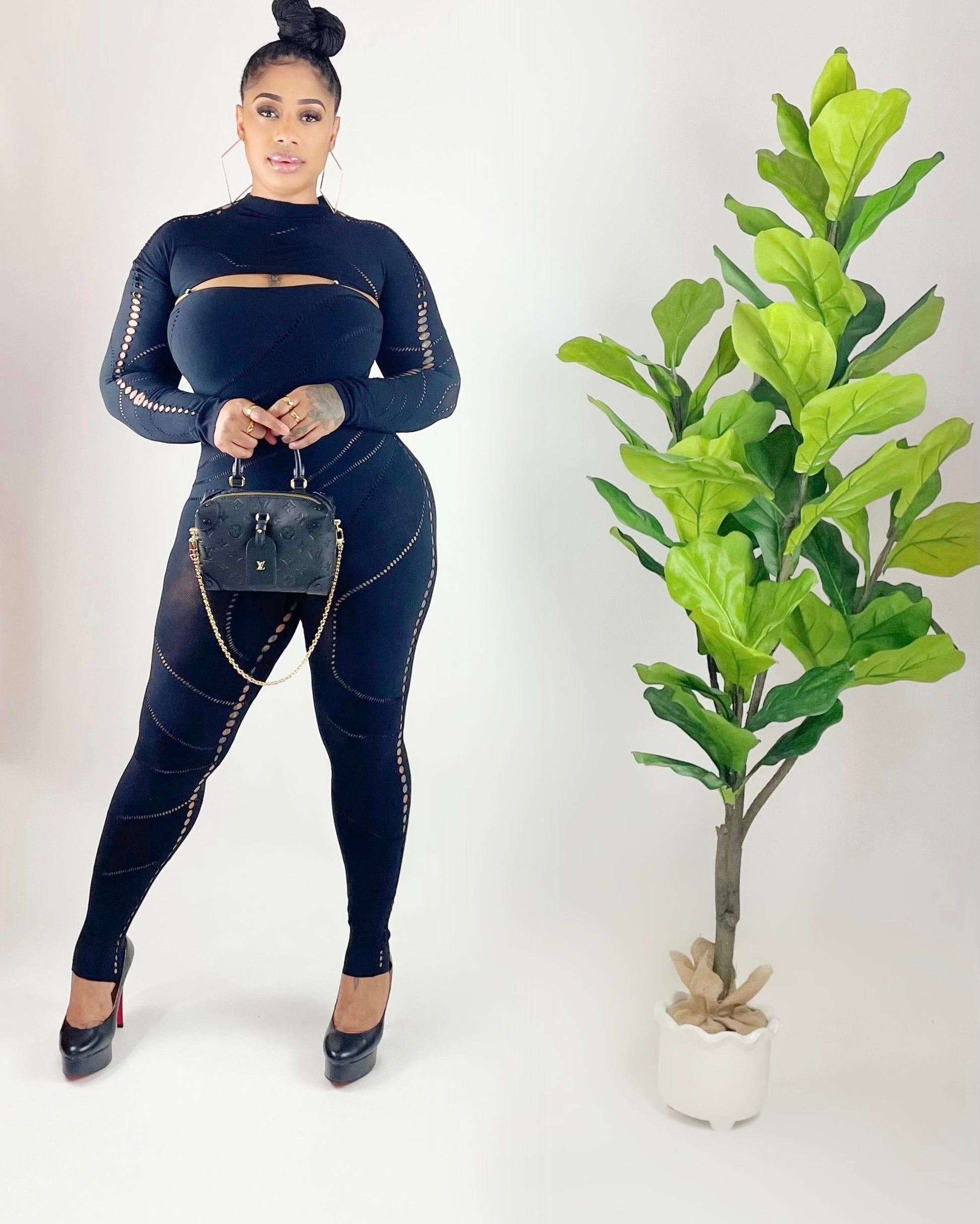 This Black Forest Jumpsuit is made with a great stretch fabric, allowing for comfortable movement. The unique hollow out design adds a touch of style, while the knitted material keeps you cozy. With a long sleeve top and attached two-piece buttons, this jumpsuit is a versatile and fashionable addition to any wardrobe.