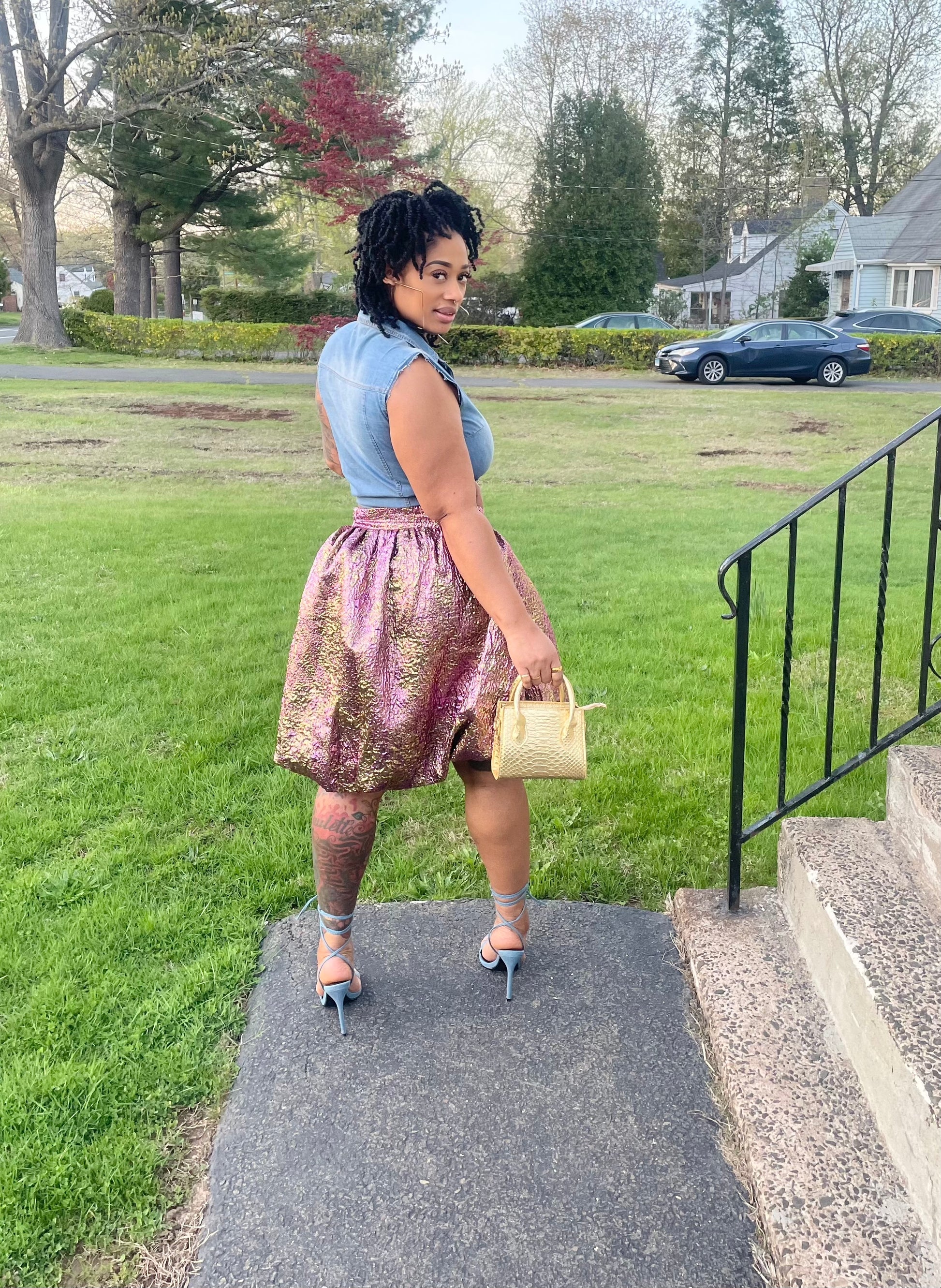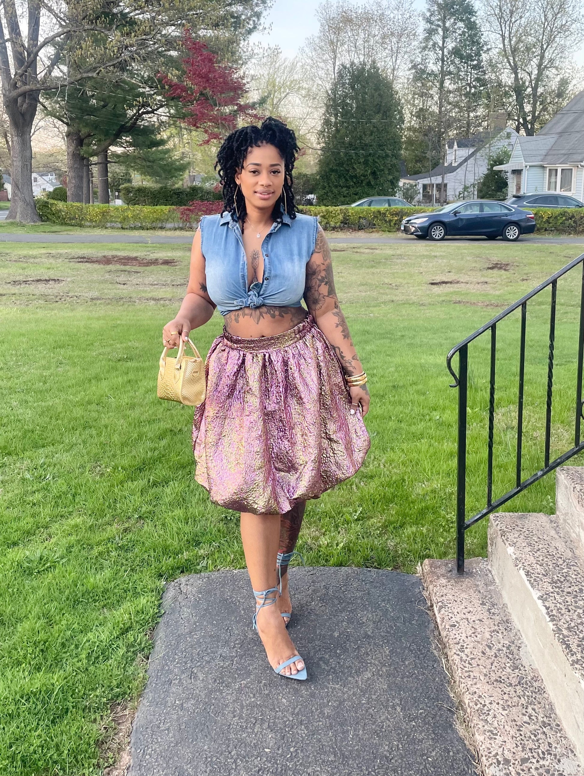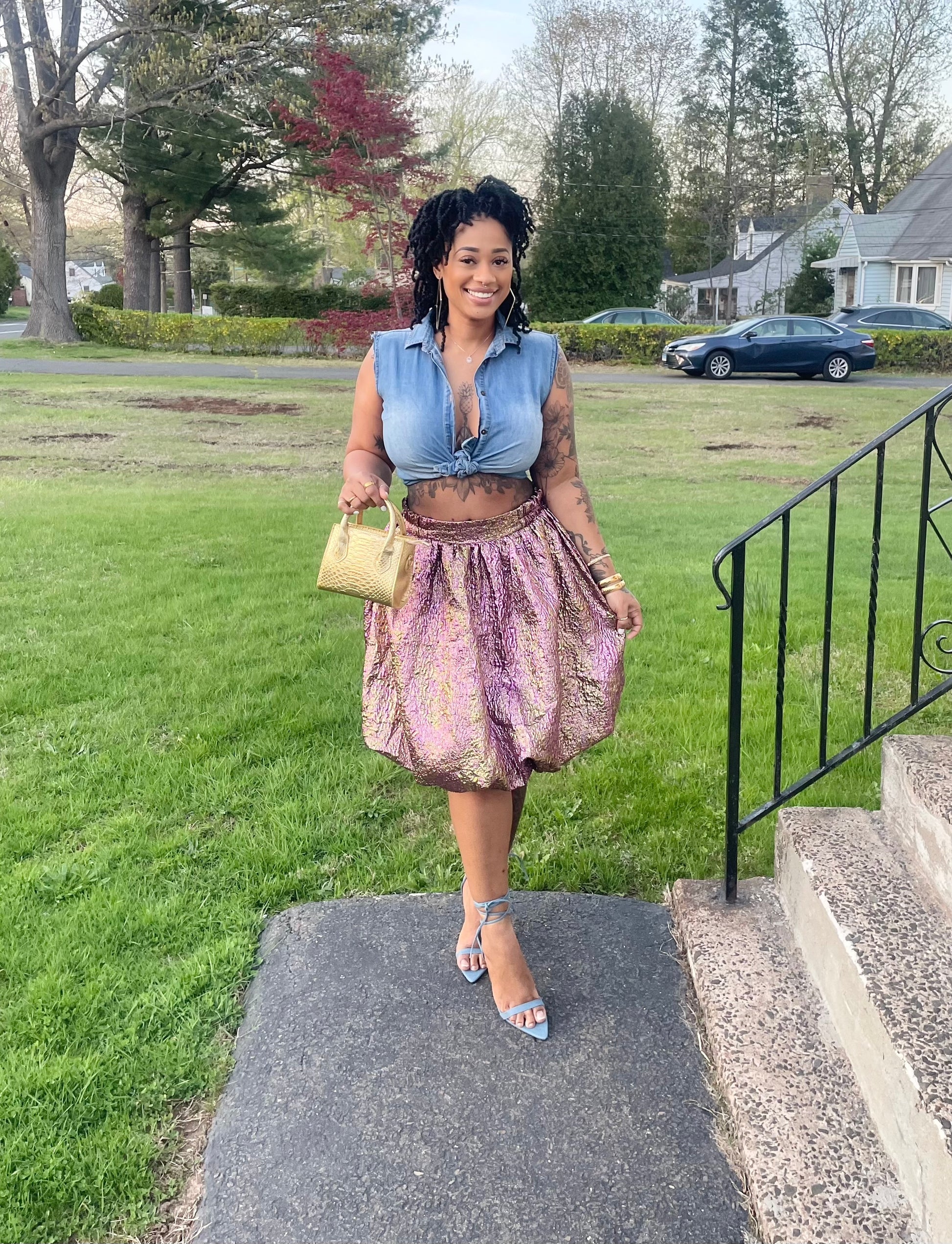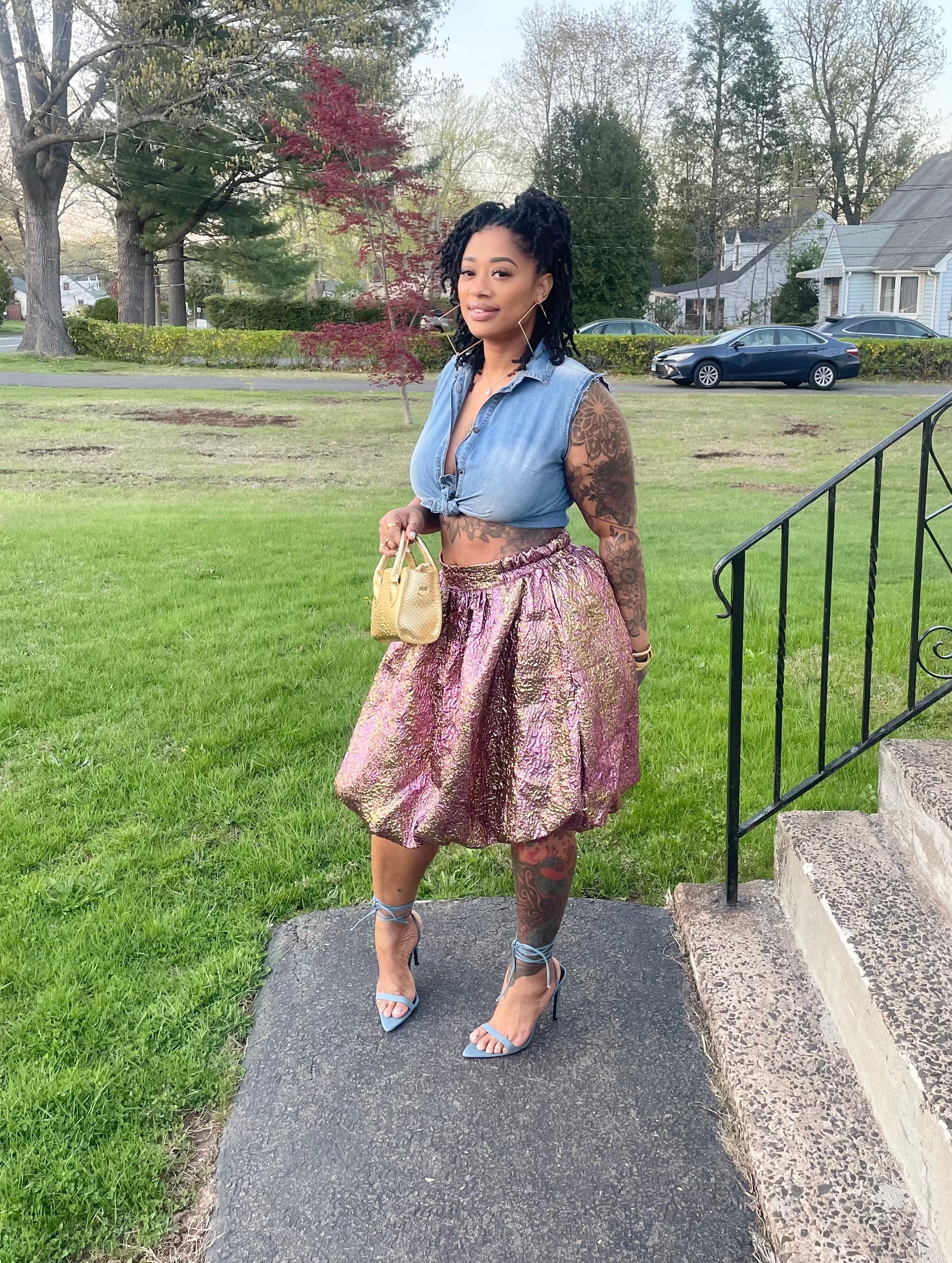 gold tote bag & gold earrings also on website