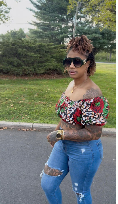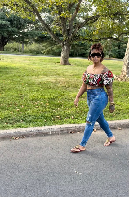 Turn heads with our African Traditional Off-Shoulder Crop Top, a bold fusion of culture and modern style. The off-shoulder neckline adds just the right touch of sensuality, while the trendy crop length gives your outfit a fresh, fashion-forward edge. Designed with elasticated edges for a secure yet flexible fit, this top ensures all-day comfort without compromising on elegance.